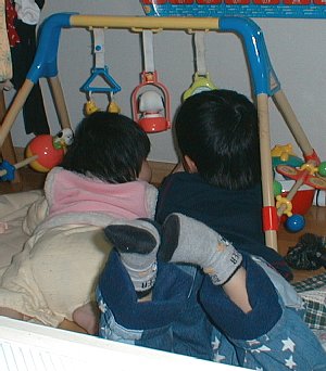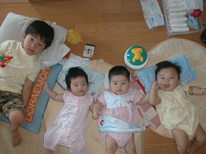 嫁のお友達のお子さんたちと ( 2003.08.04 ) 左から 崚太、菜摘、華〈はな〉ちゃん、優希〈ゆうき〉くん