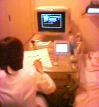 赤ちゃんの心音や胎動,お腹の張り具合をみます