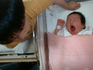 嫁がシャワーを浴びている間、新生児室の菜摘を見てました