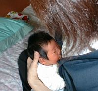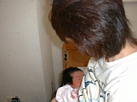 着替えのあと、泣き始めたので、お乳をあげます。