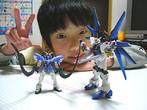7歳の誕生日。 私が仕事で遅かったので、家族ではケーキでお祝いしました。 生クリームたっぷりのケーキは、崚太が好まないので、 ケーキは、ネットショップでザッハトルテを注文しました。 最近はガンダムに夢中で、先日は嫁さんと2人で映画を見に行ってきました。 ということで、誕生日プレゼントはガンダム(^_^;)