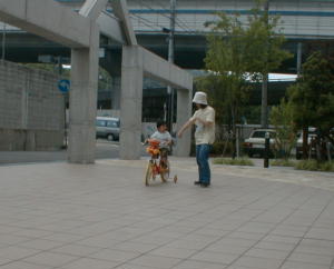 自転車を嫁父に買って貰って、初めて自宅下で遊びました。 まだ上手くこげてませんが、一応平地では動かせてます(^_^;) その時のスナップです。