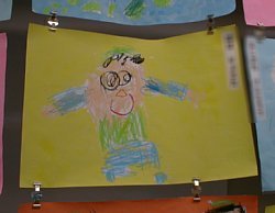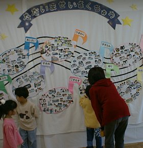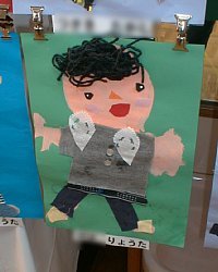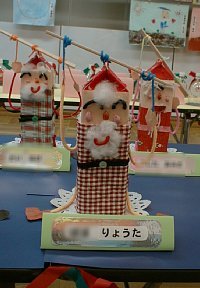 今日は雨(−−;) ゆっくりと歩いて幼稚園に行きました 幼稚園のみんなが一生懸命作ったモノの展示会です。 力作を、どうぞ、、、