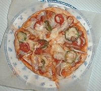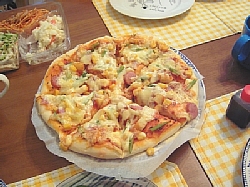 初登場!(笑) ピ ザ で す \(^O^)/ 切ったあとに撮影したのでちょっと写真写りが悪いですけど、美味しかった〜(^_^)v 下に見える紙は、クッキングシートです。 パイ生地は、コープ宅配で買った日本製粉株式会社のパンミックスです。 手間がかからなくて、なかなかGood!! だそうです(嫁談) 326円/袋 この1袋で、焼き上げ前18cmのピザが 2枚 作れます。 私一人分でこれくらいの量が欲しい(笑)