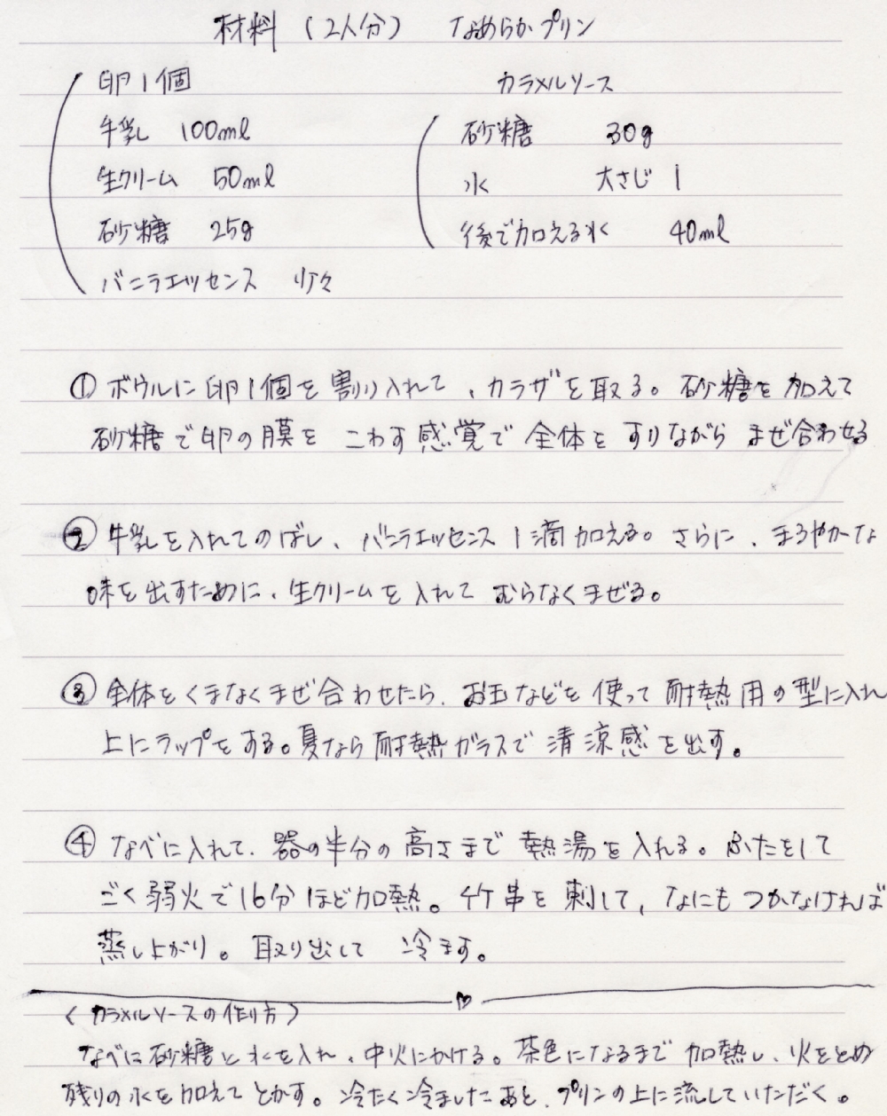 プリン第二弾のレシピです(^^ゞ クリックすると拡大しますm(__)m 前回紹介したプリンよりもお手軽に出来るんだそうです。4個分 生クリームを使わないのに、なめらかなプリン♪ お試し下さい