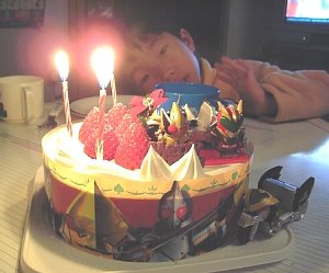 イヴ(24日夜)は夕食→お風呂→ケーキ クリスマス(25日)は、サンタさんからプレゼントが届いて、大喜びの崚太君