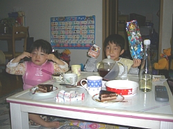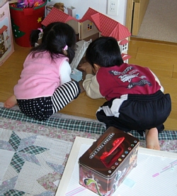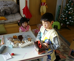 クリスマス(25日)は、サンタさんからプレゼントが届いて、大喜びの崚太と菜摘