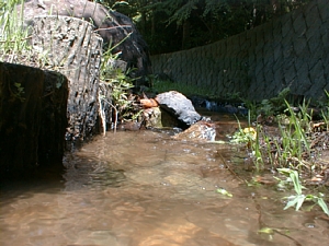近くには、とんぼやホタルを育てようと小川が流れています