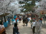 花見客で駅の出口は混雑していました。