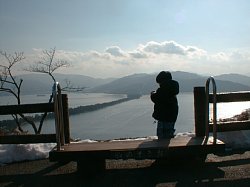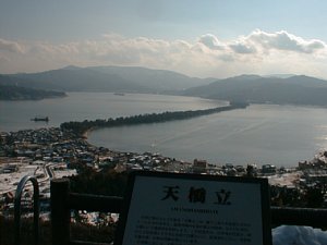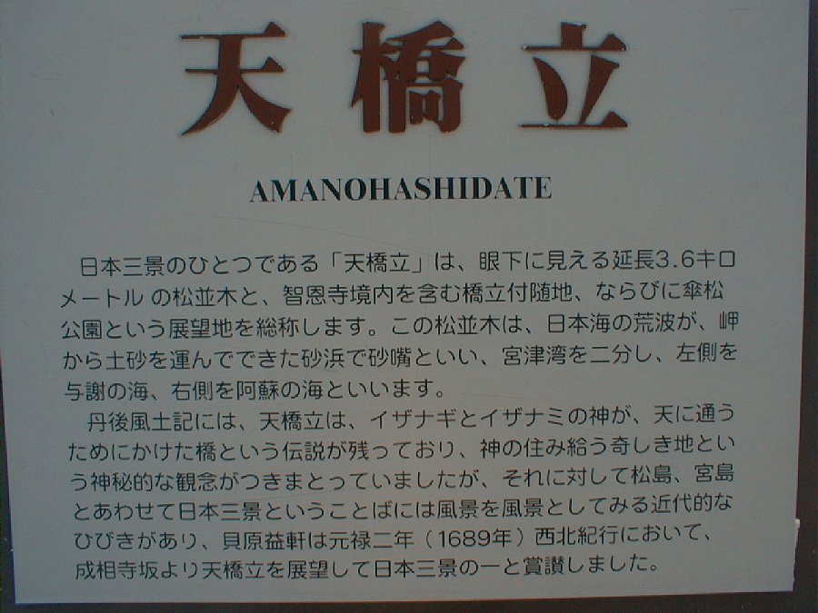 天橋立は、逆さまから見ると、天に掛かる橋のように見えます。