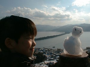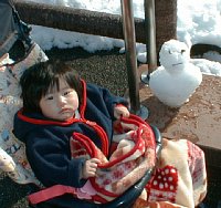 雪が残っているので、崚太はちょっと嬉しいみたい。嫁と雪だるまを作っていました(笑)