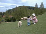 そこへ、羊が何頭か。。。 お弁当の中に顔をつっこんでしまいました(‥;)