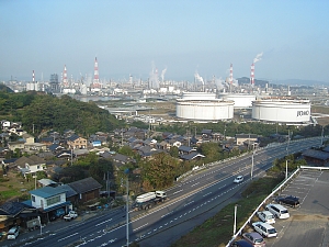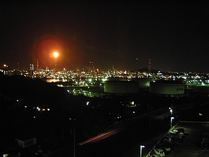 宿泊したホテルの窓から見える 水島コンビナートの夜景です