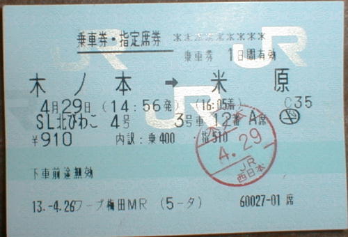 2001.4.29、SL列車北びわこ号に乗ってきました。